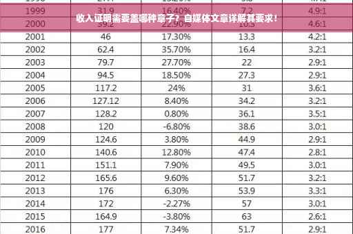 在现代社会,收入证明是办理各类业务的重要凭证,无论是贷款购房、申请信用卡还是求职履历确认等,都需要提供收入证明,而在提交收入证明时,很多人对于应该加盖哪种章子存在疑惑,本文将详细解析收入证明中需要加盖的章子种类及其作用,帮助大家了解其中的规定和要求。