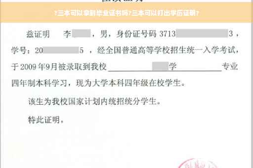 三本可以拿到毕业证书的!本科三批录取毕业的学生和一本二本一样,都是本科层次的大学生,文凭相等、学历相同,均属于本科学历。证书有区别: