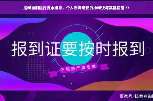 在现代社会,随着经济的发展和个人财务的日益复杂化,越来越多的人开始关注个人财务管理,银行流水作为个人财务状况的重要体现,对于申请贷款、信用卡以及评估个人经济状况等方面具有举足轻重的地位,本文将介绍如何自制银行流水结息,帮助大家更好地管理个人财务,实现财富的稳健增长。