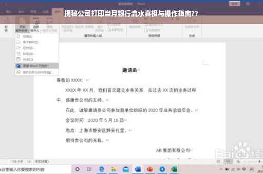 摘要:本文将介绍公司如何打印当月银行流水,揭示背后的真相及操作指南。通过阅读本文,您将了解到银行流水的重要性,以及如何便捷地获取和打印流水账单。本文将提供简单的步骤和操作技巧,帮助您轻松完成打印任务,同时避免可能出现的问题。