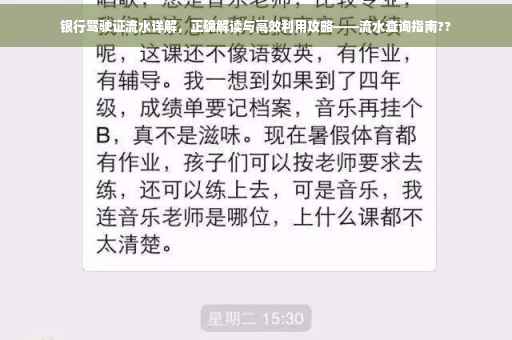 在“银行驾驶证流水解读”部分,可以增加一些具体示例,以帮助读者更直观地理解如何解读流水,您可以提供一张银行驾驶证流水的截图,并指出其中的交易日期、交易金额、交易类型、账户余额和特殊标注等关键信息,解释如何根据这些信息了解资金流动情况。