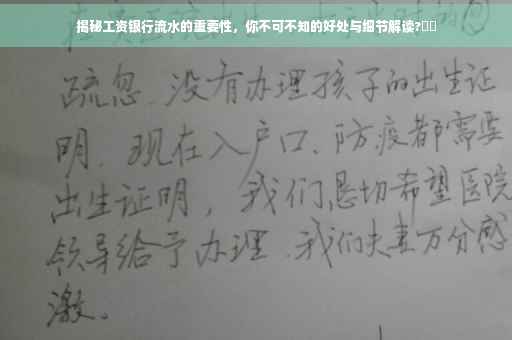 3、税务申报的可靠依据:对于税务申报,工资银行流水提供了可靠的依据,个人通过银行流水账单,可以清晰地了解自身的收入情况,从而准确进行税务申报,这有助于避免税务违规操作,维护个人信用记录。