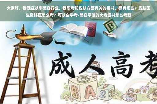 可以考美容师证。如果在有美容科的医院也可以报考医师资格。大专学历要先考助理医师考过两年后方能继续报考执业医师。如果不在医院工作美容院等机构可以考美容师证。如果没有单位则不可以报考职业医师,因为职业医师要求有相关专业本科学历且有工作单位才能报考。