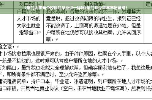 两个校区的的毕业证不一样,考上厦门大学,就在厦门大学读书。考上漳州校区的,就在漳州校区读书。因为,现在的厦门大学与漳州校区,根据2015年的通知,公办与民办分开。厦门大学是公办一本大学。漳州校区是民办二本大学。与厦门大学在毕业证书上已经分开,学生毕业后,毕业证书是厦门大学的,就盖厦门大学校章,厦大校长签名。是漳州校区的,就盖漳州校区校章,漳州校区校长签名。 就是说,原来的二级学院已经长大了,该断奶了,不让再挂靠了,是本一厦大的,就到厦门读。是本二分校的,就到分校读。毕业证书也不一样。