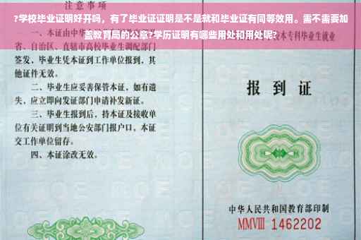 。学历证明书和毕业证书具有同等效力学校出具学历证明书是一种行政确认做法,是学校的法定职责《普通高等学校学生管理限定》第三章学籍管理第三十九条毕业、结业、肄业证书和学位证书遗失或者损坏,经本人申请,学校核实后应当出具相应的证明书。证明书与原证书具有同等效力。