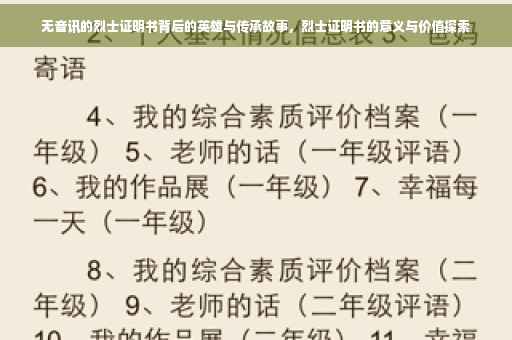 摘要:,,烈士证明书是对英雄事迹的官方认定和荣誉证明,具有重要的历史和文化价值。一份无音讯的烈士证明书背后隐藏着一段关于英雄与传承的故事。这份证明不仅是对烈士的崇高敬意和缅怀,更是传承英雄精神、弘扬爱国情怀的载体。通过这份证明,我们可以铭记烈士的英勇事迹,传承他们的精神,激发人们的爱国热情和民族自豪感。