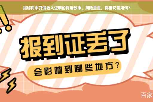 摘要:本文探讨了同事开假收入证明的背后故事,揭示了这种行为可能存在的风险。通过开假收入证明,同事可能会面临法律风险,同时单位和雇主也可能因此遭受损失或信誉受损。建议各方保持诚信原则,遵守相关规定,避免潜在风险。