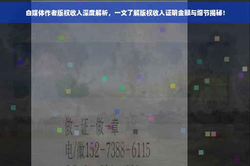 自媒体作者版权收入证明金额因多种因素而异,本文将深度解析版权收入证明的具体金额。文章将探讨版权收入证明的重要性、影响因素以及如何合理获取版权收入证明等问题。阅读本文,您将了解到自媒体作者如何通过版权获得合理收入,以及版权收入证明的具体金额范围。本文旨在帮助自媒体作者更好地维护自身权益,获取应有的版权收入。
