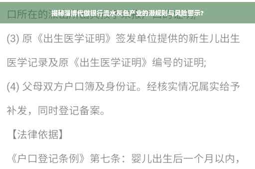 近年来,随着社会的快速发展,各种新兴行业层出不穷,代做银行流水这一行业逐渐进入人们的视野,特别是在淄博这样的地区,由于经济活跃,金融行业发达,代做银行流水的现象尤为突出,这一行为背后隐藏着巨大的风险,本文将揭示淄博代做银行流水的真相,帮助公众认清其背后的潜规则和风险。