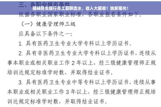 随着金融行业的快速发展,银行业内的薪酬水平一直备受关注,作为其中的佼佼者,民生银行的薪酬体系更是备受瞩目,本文将为您揭示民生银行的薪酬流水,带您了解这家银行员工的收入水平,以及薪酬体系背后的故事。