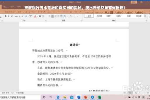 在申请贷款的过程中,银行流水作为重要的申请材料之一,扮演着至关重要的角色,许多人在申请贷款时被要求提供银行流水,却不清楚这一要求的背后意图,本文将详细解析贷款打银行流水的目的,帮助大家更好地了解贷款过程中的这一环节。