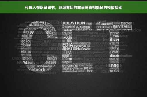 在职场中,代理人在职证明书作为一种重要的文件,扮演着证明个人职务身份和工作状况的角色,随着时代的变迁和职场竞争的加剧,代理人在职证明书背后的故事和真相逐渐浮出水面,本文将围绕代理人在职证明书展开讨论,揭示其背后的故事与真相,帮助读者更好地了解这一职场现象。
