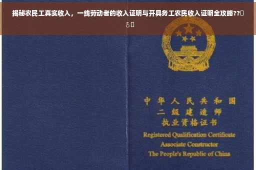 在当今社会,农民工作为城市建设的不可或缺的力量,为城市的发展付出了巨大的努力,关于他们的真实收入情况,外界往往知之甚少,本文将通过一线劳动者的视角,揭示农民工的真实收入状况,为广大读者呈现一份来自一线劳动者的收入证明。