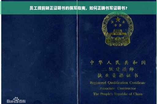 摘要:,,本证明书旨在确认员工提前转正的事宜。经过考核评估,员工表现优异,符合公司提前转正的要求。经过领导审批,员工成功获得提前转正资格。本证明书的撰写应包含员工基本信息、所在部门、入职时间、转正时间、考核情况等内容,以证明员工的实际工作表现和能力。此证明书将作为员工转正的重要凭证,对于员工的职业发展和公司的管理具有积极意义。