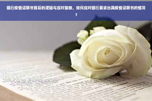 随着新冠疫情的肆虐,各行各业均受到了前所未有的冲击,作为金融体系的核心,银行采取了诸多防控措施以应对疫情带来的影响,要求客户出具疫情证明书逐渐成为一种常见的做法,本文将对这一现象进行深入探讨,分析银行要求出具疫情证明书的背景、逻辑以及公众应对之策。