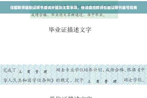 摘要:想要查询教师编制证明书,可遵循以下详细步骤:访问相关政府部门官网,进入教师编制查询页面,输入个人信息如姓名、身份证号等,提交查询请求。注意事项包括确保信息准确无误,防范个人信息泄露风险。查询教师在编证明书编号时,需登录官方教育管理系统,输入证书编号等相关信息验证身份。确保在官方平台操作,以保障信息安全。