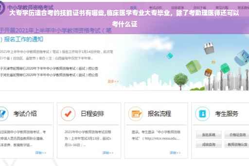 考试分为四个等级,不同等级的内容不同,一级主要考核微型计算机基础知识和使用办公软件及因特网(Internet)的基本技能。一级分为DOS版和Windows版,考核应试者计算机基本知识和使用微机系统的初步能力。考试科目有一级MS Office、一级WPS Office、一级Photoshop,一级共三个科目。一级WPS Office考试内容: (1) 选择题(计算机基础知识和网络的基本知识)。(2) Windows 操作系统的使用。(3) WPS 文字的操作。(4) WPS 表格的操作。(5) WPS 演示软件的操作。(6) 浏览器(IE)的简单使用和电子邮件收发。一级MS Office考试内容: (1) 选择题(计算机基础知识和网络的基本知识)。(2) Windows 操作系统的使用。(3) Word 操作。(4) Excel 操作。(5) PowerPoint 操作。(6) 浏览器(IE)的简单使用和电子邮件收发。一级Photoshop考试内容: (1)单项选择题 (含计算机基础知识部分,Photoshop 知识与操作部分)。(2)Photoshop 操作题(含3 道题目)。临床医学专业大专毕业,一般都是考助理医师证,然后做相关的工作后在考医师资格证; 据《中华人民共和国执业医师法》及有关规定具有下列条件之一的,可以参加医师资格考试: (一)具有高等学校医学专业本科以上学历,在执业医师指导下,在医疗、预防、保健机构中试用期满一年的; (二)取得执业助理医师执业证书后,具有高等学校医学专科学历,在医疗、预防、保健机构中工作满二年;具有中等专业学校医学专业学历,在医疗、预防、保健机构中工作满五年的。 (三)具有高等学校医学专科学历或者中等专业学校医学专业学历,在执业医师指导下,在医疗、预防、保健机构中试用期满一年的,可以参加执业助理医师资格考试。 以师承方式学习传统医学满三年或者经多年实践医术确有专长的,经县级以上人民政府卫生行政部门确定的传统医学专业组织或者医疗、预防、保健机构考核合格并推荐,可以参加执业医师资格或者执业助理医师资格考试。考试的内容和办法由国务院卫生行政部门另行制定。