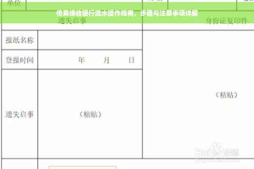 本文详细介绍了传真接收银行流水的操作指南及注意事项,希望能帮助您在办理金融业务时顺利完成传真接收银行流水的操作,在操作过程中,请注意保护个人隐私、核对信息、选择安全的传真方式、保留好相关凭证以及及时关注业务办理进度,如有任何疑问,请及时咨询相关部门或银行,祝您顺利办理金融业务!