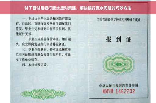 摘要:付了首付后,面对银行流水问题,可通过多种方式巧妙应对。可提前规划并调整个人财务管理,确保流水记录充足。可提供其他证明如工资单、奖金收入等作为补充。若流水记录确实不足,可考虑与亲友合作,借助其流水记录作为担保。充分了解银行要求,提前准备,是解决银行流水问题的关键。
