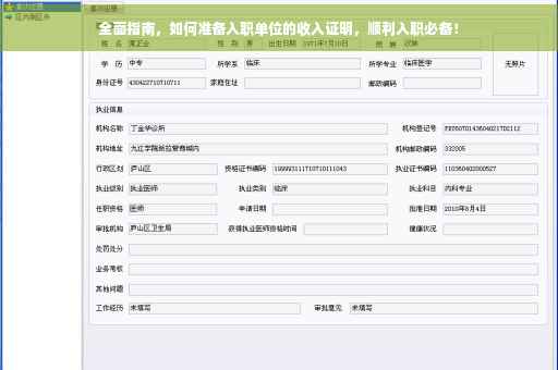 入职单位要收入证明是求职过程中的一个重要环节,为了顺利入职,你需要提前准备好相关的收入证明文件,并确保文件真实有效,本文为你提供了关于入职单位要收入证明的全面指南,希望对你有所帮助,在求职过程中,如有任何疑问,建议及时向雇主咨询,祝你求职顺利!