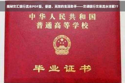 随着科技的飞速发展,我们的生活越来越离不开银行服务,无论是日常消费还是企业运营,银行业务都扮演着至关重要的角色,为了满足广大客户的需求,各大银行纷纷推出了一系列便捷的服务功能,本文将重点介绍交汇银行流水PDF版,探讨其便捷性、安全性与高效性,帮助大家更好地了解和使用这一服务。