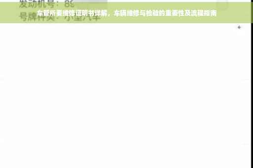 车辆维修与检验是确保车辆安全、环保和性能的重要环节,通过维修证明书,可以确保车辆得到妥善的维修和检验,保障车主的权益,车主应重视车辆的维修和检验,并妥善保管维修证明书,车管所应加强对维修证明书的审核和管理,以确保车辆的安全和环保。