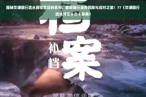交通银行流水异常现象引起了广泛关注,我们在日常生活中应提高警惕,加强账户安全设置,养成良好的金融安全意识,如遇到相关问题,应及时联系银行并寻求帮助,希望通过本文的剖析和探讨,能帮助大家更好地了解交通银行流水异常背后的真相。