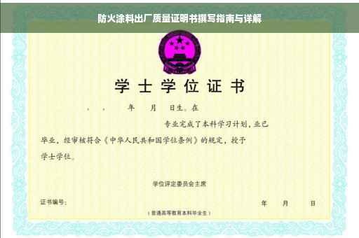 摘要:,,本文详细解释了防火涂料出厂质量证明书的编写方式。质量证明书是证明防火涂料质量合格的重要文件,通常包含涂料的基本信息、生产日期、质量检测报告等内容。本文介绍了如何准确、全面地撰写防火涂料出厂质量证明书,以确保其法律效力及涂料质量的可追溯性。让读者了解如何正确获取和使用防火涂料出厂质量证明书。