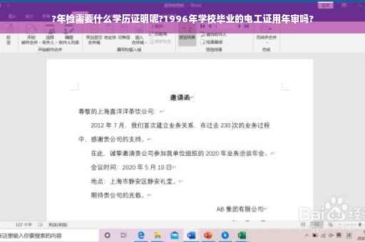 1996年学校毕业的电工证是要年审的,学校毕业的电工证如果这些年来没有审的话,就过期了,要从新开始考试,要到劳动部门考试合格,才能取的电工证,电工证是三年审一次,学校的电工证是劳动部门认可的,但是是年审的,过期不审是做废的,注意电工证的年审时间,防止过期。