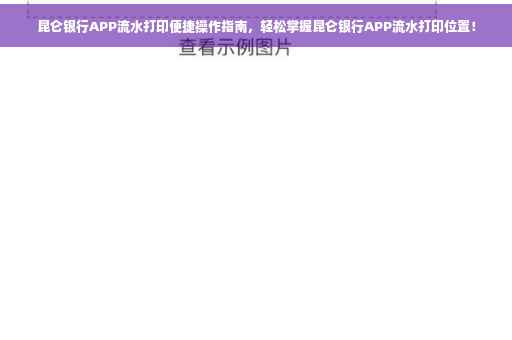 随着科技的快速发展,越来越多的人开始使用银行APP来管理自己的财务,昆仑银行APP作为一款便捷、功能丰富的手机应用,为用户提供了多种服务,其中包括流水打印功能,本文将详细介绍昆仑银行APP流水打印的步骤、注意事项以及常见问题解决方案,帮助用户更好地使用该功能。