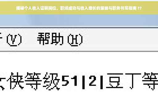 个人收入证明岗位是职场成功和收入增长的关键所在,通过不断提升自身能力、积累工作经验、拓展人脉资源以及遵守法律法规和保持诚信等途径,我们可以更好地应对职场挑战,实现个人职业发展和收入的增长,希望本文的探讨能够帮助读者更好地认识和理解个人收入证明岗位,为自己的职业发展创造更多可能性。