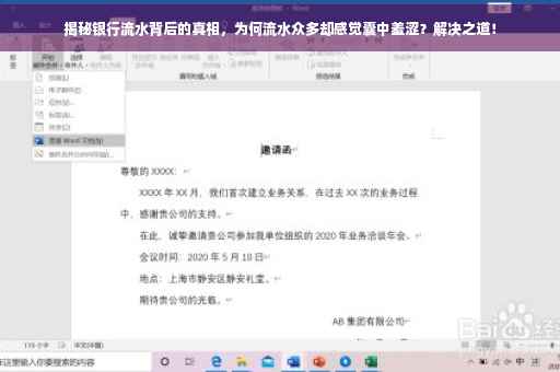 在我们的日常生活中,银行流水账单是反映个人或企业财务状况的重要指标,很多人对银行流水的理解存在误区,认为流水账单上的数字越多,代表个人财务状况越良好,流水账单上的数字并不能完全代表真实的财务状况,为什么我们有时会发现即使银行流水很多,仍然感觉没有钱呢?本文将对此进行深入探讨,并为您提供正确的理解和改善财务状况的建议。