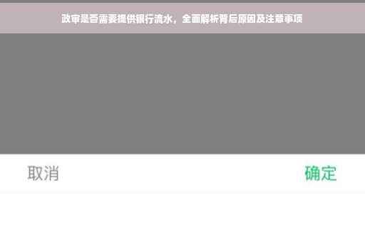 随着社会的不断发展,政审逐渐成为人们生活中的一个重要环节,无论是求职、升学还是其他需要审核的情况,政审都是必不可少的一环,而在政审过程中,有时需要提供各种材料,其中银行流水是否必须提供,却让很多人感到困惑,本文将详细解析政审是否需要银行流水,同时探讨相关原因及注意事项,帮助大家更好地了解和应对政审过程。