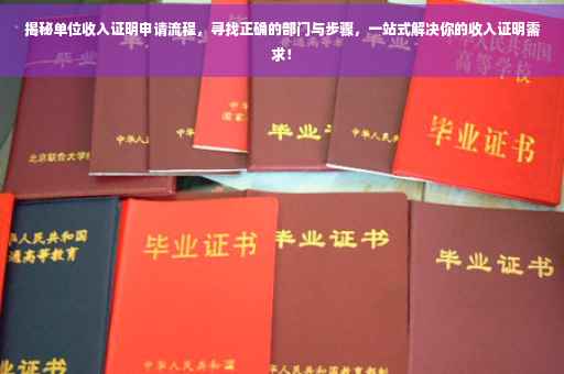 摘要:想要申请单位收入证明,需要找到正确的部门和遵循一定的流程。申请人需要前往所在单位的人力资源部或财务部门进行咨询和申请。在申请过程中,需填写相关表格并提交必要的证明材料。本文为您揭秘了单位收入证明申请的具体流程,帮助您轻松找到正确的部门并完成申请。