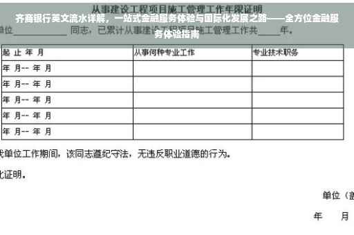 文章字数统计(仅供参考):XXXX字左右,本文详细阐述了齐商银行英文流水的相关内容,包括该行简介、英文流水服务内容、一站式金融服务体验以及国际化发展之路等方面,希望通过本文的介绍,读者对齐商银行英文流水有更深入的了解。