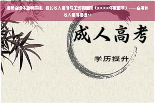 摘要:本文是一份自媒体收入证明工资表的回顾文章,揭示了作者在XXXX年的自媒体盈利真相。文章通过收入证明模板展示了作者的收入来源和收入水平,并探讨了自媒体之路上的盈利方式和经验。对于想要了解自媒体盈利的读者来说,本文具有一定的参考价值。