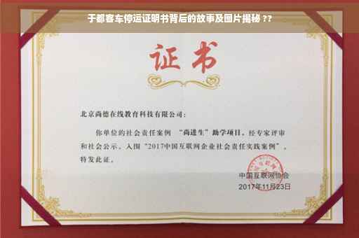摘要:于都客车停运证明书背后隐藏着一段故事。由于某些原因,于都客车被迫停运,相关图片引发了人们的关注。想要了解这一事件背后的真相,需要深入挖掘其停运原因、影响以及后续发展。这段故事或许关乎城市发展、交通规划或社会变迁,引人深思。