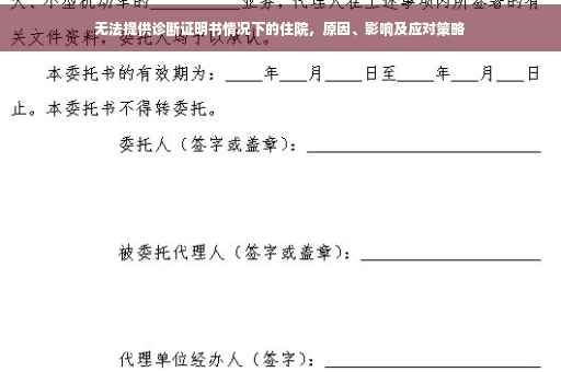 通过以上内容,我们了解了住院无法提供诊断证明书的原因、影响及解决方案,希望本文能够帮助大家更好地应对这一问题,保障自己的权益,在实际生活中,如遇到相关问题,可结合本文内容具体处理。