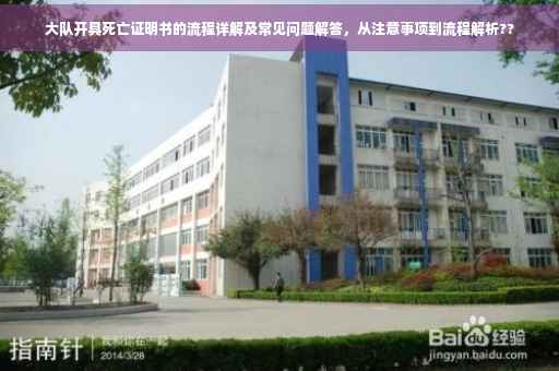 摘要:大队开具死亡证明书流程包括确认死亡事实、填写申请表格、提供相关证件和资料、审核并签发证明书等步骤。注意事项包括确保资料真实准确、遵守规定程序、注意证明书的格式和用语等。常见问题解答涉及死亡原因不明确、资料不全或不符合规定等情况的处理方法。整个过程需严谨细致,确保死亡证明的有效性。
