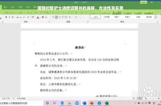 摘要:医院扣留护士进修证明书引发社会关注。事件背后涉及医院管理和护士权益的问题。医院扣留证明书是否违法,需结合具体情况分析。此事件反映了医院管理的不完善,应重视护士的职业发展权益。建议完善相关法规,保障护士合法权益,促进医疗行业的健康发展。