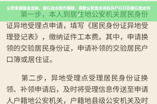 摘要:本文将为你揭秘公积金提取和银行流水操作的全面攻略。关于领取公积金的银行流水是否一定要在开户行打印的问题,本文将进行解答。全文将详细介绍公积金提取的流程,以及银行流水操作的注意事项,帮助你轻松完成公积金提取。