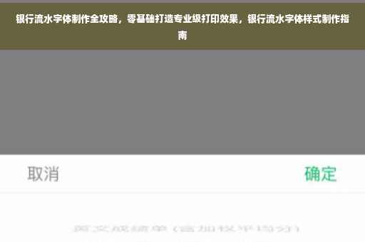 制作银行流水字体是一项需要专业技能和细心的工作,通过本文的介绍,您已经掌握了制作银行流水字体的基本方法和技巧,在实际操作中,您还需要遵循银行标准,保持简洁易读,降低成本并持续更新优化,希望本文能为您带来帮助,让您轻松打造出专业级的银行流水字体打印效果。
