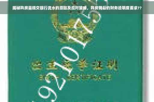在银行审批贷款的过程中,要求购房者提供银行流水是出于多方面的考虑,银行需要通过审查银行流水来评估购房者的还款能力,了解其收入、支出及稳定性,银行需要控制贷款风险,确保贷款发放给有稳定收入来源的购房者,降低坏账风险,银行流水也有助于防范购房者提供虚假收入证明等欺诈行为。