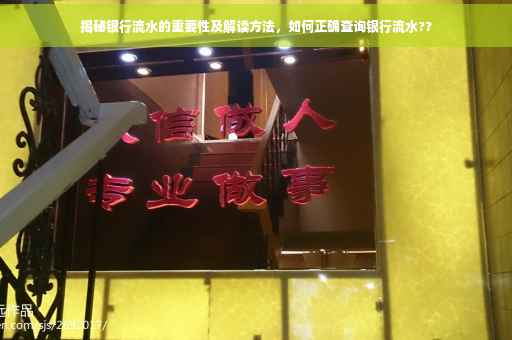 摘要:银行流水是评估个人财务状况的重要依据,其重要性不容忽视。正确解读银行流水可以帮助我们了解自己的收支状况、信用记录和财务状况。本文将揭秘银行流水的重要性,并介绍正确的查询和解读方式,帮助读者更好地管理个人财务。通过本文,您将了解如何轻松查询银行流水,从而更好地掌握个人财务情况。