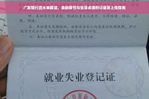 摘要:,,本文介绍了广发银行流水单照片的相关内容,包括其背后的金融细节与生活点滴。文章还指导读者如何上传广发银行流水单照片。通过简单的步骤,让读者轻松掌握上传方法,以便更好地了解自己的财务情况。