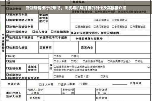 新冠疫情给全球带来了前所未有的挑战,人们的出行也因此受到了极大的限制,随着疫情逐渐得到控制,各国开始逐步放开限制,出行证明书成为了人们出行的关键所在,本文将探讨新冠疫情出行证明书的重要性、作用,以及在实际应用中面临的挑战和机遇。