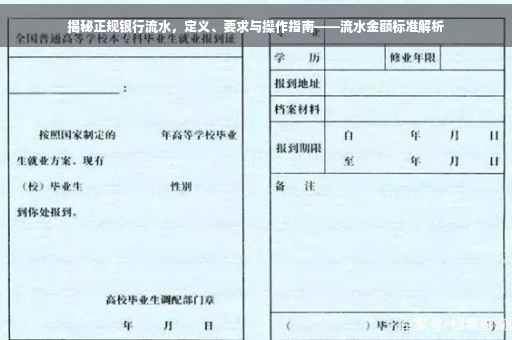 摘要:本文将揭示正规银行流水的定义、要求及实际操作指南。读者将了解银行流水的重要性,包括其在财务审核、贷款申请等方面的作用。文章将介绍银行流水的标准金额要求,同时提供实际操作步骤和注意事项。通过阅读本文,读者可以更好地管理自己的银行账户,提高财务透明度。
