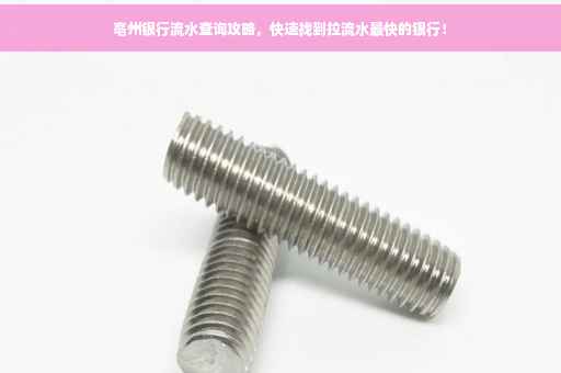 亳州作为安徽省的一个重要城市,拥有多家银行,包括国有大型银行、股份制银行、城市商业银行等,这些银行在亳州均设有分支机构,提供各类金融服务,包括流水查询等。