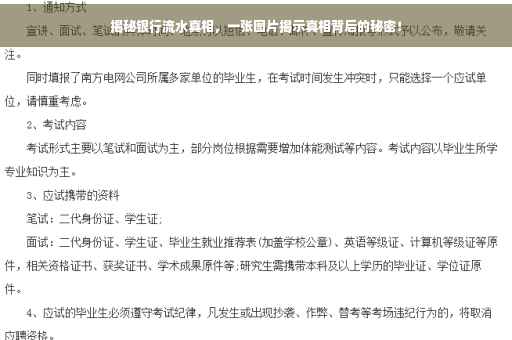 通过一张银行开流水的图片,我们可以深入了解银行流水背后的真相与重要性,对于个人和企业来说,了解银行流水的重要性、常见形式、获取途径以及注意事项至关重要,希望本文能为您带来启示和帮助,让您更加了解银行流水的奥秘!也提醒大家在涉及金融交易时,务必谨慎行事,确保自身权益不受损害。
