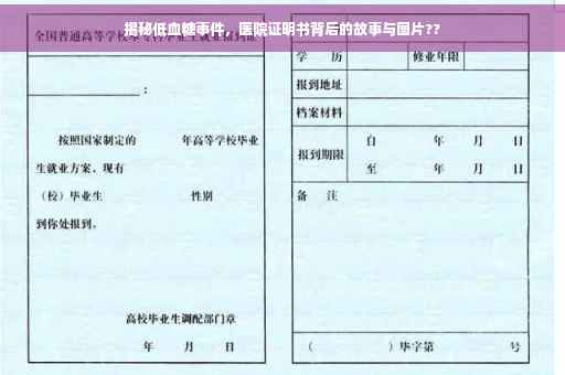 摘要:本文将揭示低血糖事件的真相,探究医院低血糖证明书照片背后的故事。通过深入了解低血糖的症状、诊断和治疗方法,帮助读者认识这一健康问题。文章将结合实例,分析低血糖事件的原因和影响,提醒人们关注自身健康,预防低血糖事件的发生。